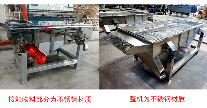 直線振動篩有兩種選擇方式:①接觸物料部分為不銹鋼材質,其他部分為碳鋼材質,②整機為不銹鋼材質,具體選擇哪種不銹鋼直線振動篩,還需要根據(jù)物料性質以及用戶的實際需求選用不同的材質,如果您的適用場景對衛(wèi)生要求高的話可以采用第二種方案。