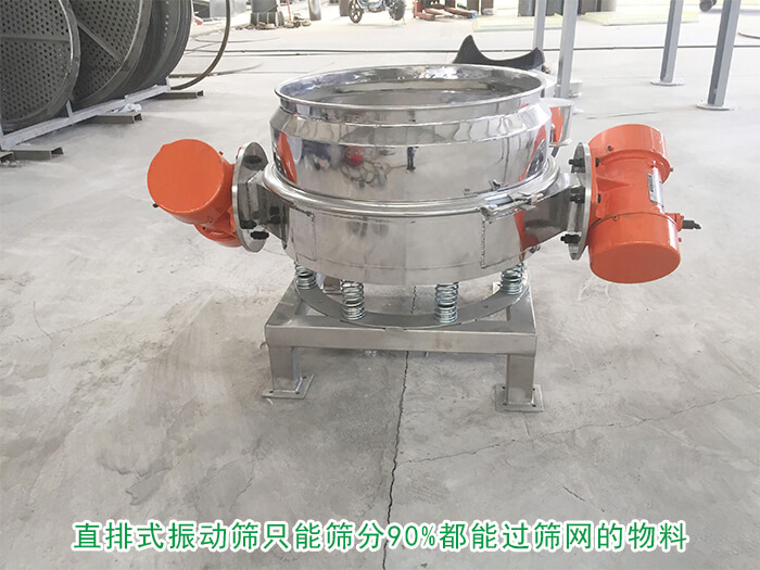 直排式振動篩:一般裝配有一臺到兩臺臥式振動電機(jī),分單振源和雙振源兩種,單振源作用到物料上主要產(chǎn)生上下振動,不具備自動排料功能,雙振源能在篩面上產(chǎn)生渦旋運動,具有自動排料功能,是以振動電機(jī)為激振源,在電機(jī)的帶動下物料在篩框上做橢圓運動,快速并往復(fù)的實現(xiàn)物料過網(wǎng)動作。