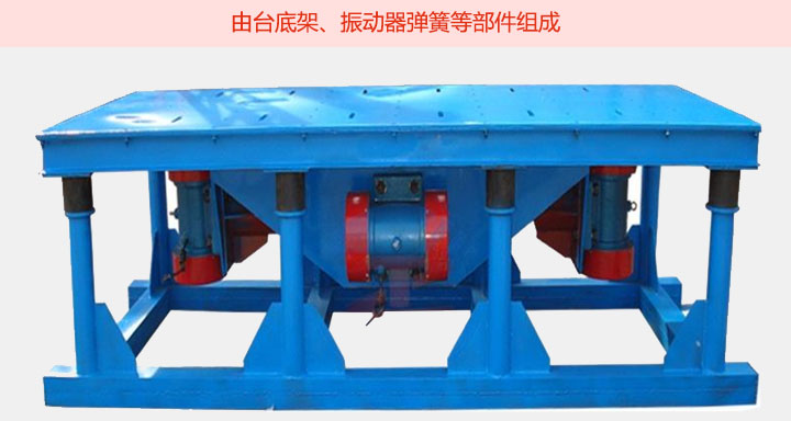 混凝土振動平臺主要由臺底架,振動器彈簧等部件組成,臺面與底架均用鋼板和型鋼焊接而成,振動臺是用電動機(jī)加一對相同的偏心論組成。并通過一對吊架聯(lián)軸器安裝在臺面中心位置,起著振實過程中平穩(wěn),垂直方向的作用。