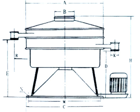 圓形搖擺篩主要由進料口、上蓋、觀察孔、篩框、密封圈、出料口、網(wǎng)架、束環(huán)、主樞軸總成、調整塊、彈簧、主軸總成、皮帶輪、底座、檢查孔、電機等部分組成。